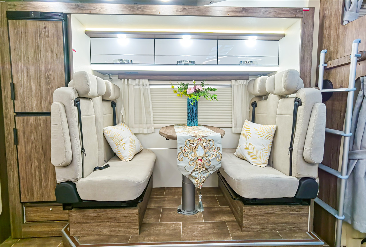 | 正副駕駛椅包 (中間菱形格) | 豪華衛(wèi)浴間 (ABS吸塑工藝) | 升降桌板(進口單腿) | ||||